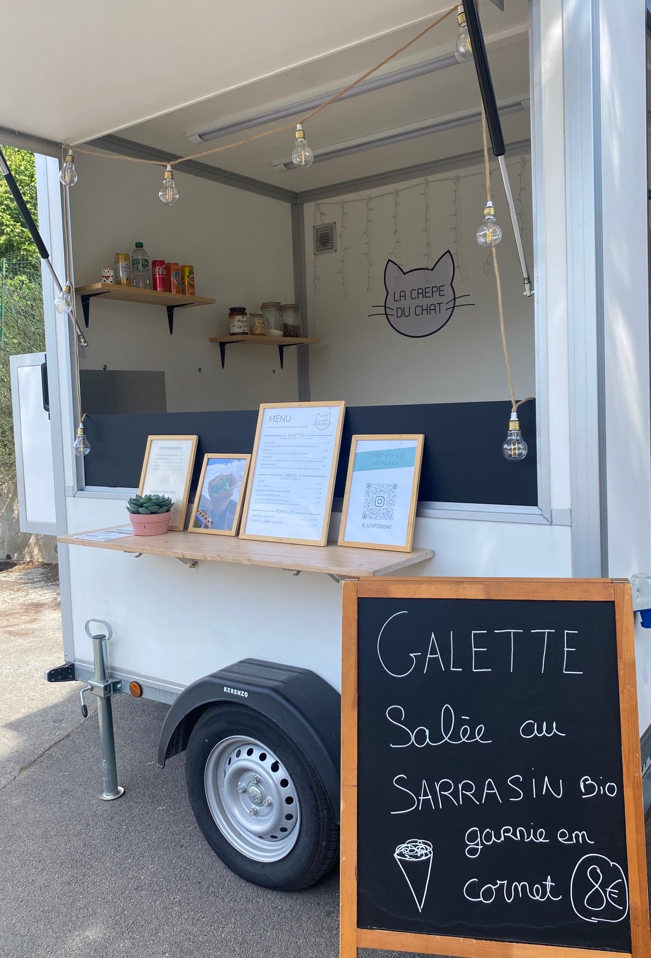 Mon projet était d avoir mon Food truck et d y vendre des galettes et des crêpes.Le confinement a ralenti les choses bien sûr. Mais depuis début Août je suis sur les routes. J ai 4 emplacements pour le moment... Il me manque encore 2 jours !! Mon camion s appelle Jeanne et Crêpes. "